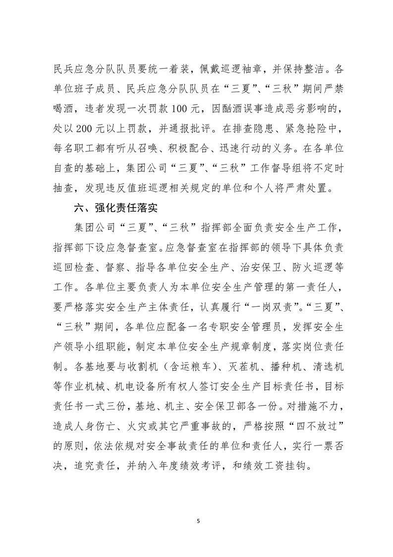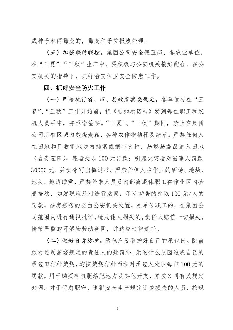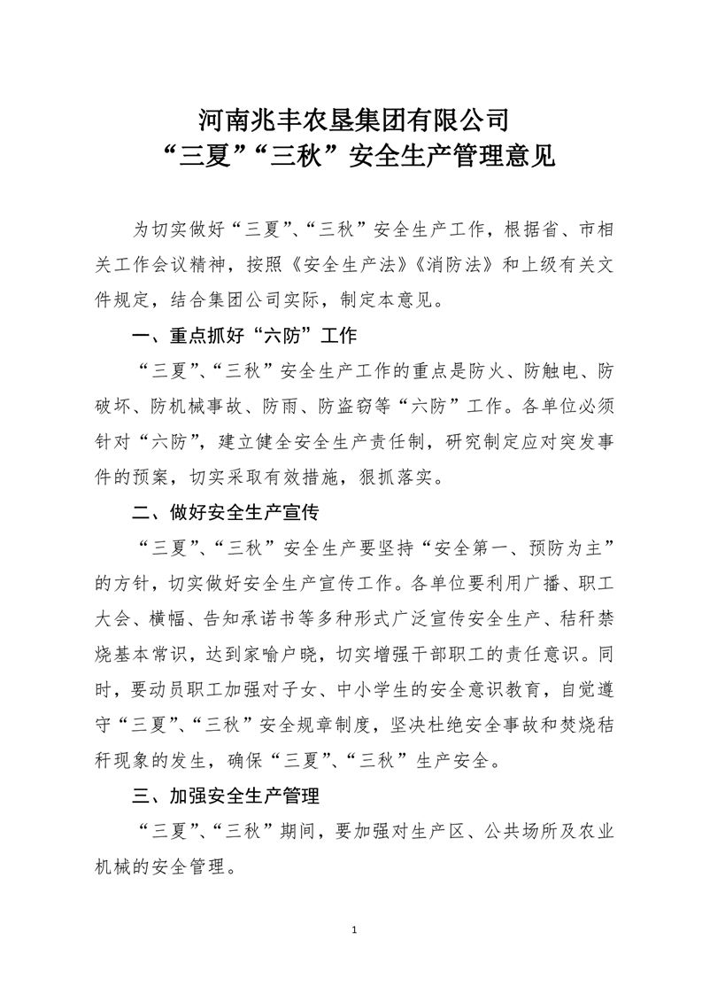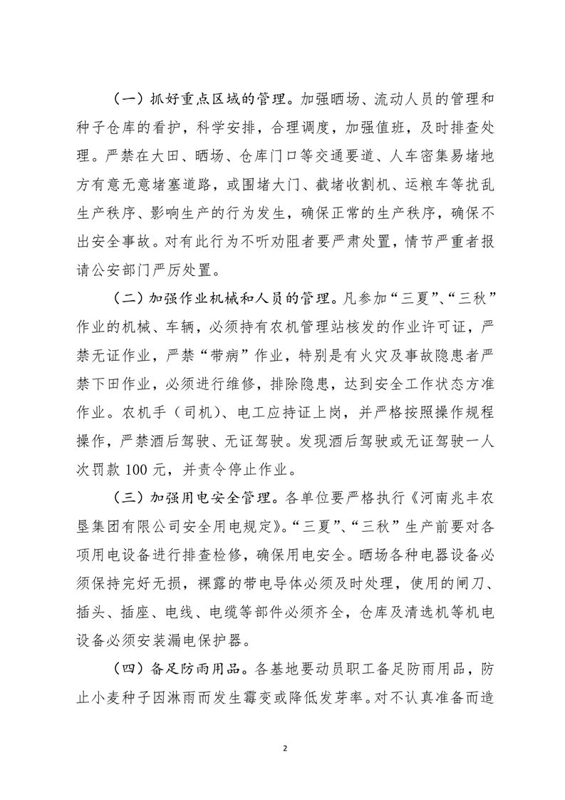 河南兆豐農墾集團有限公司 “三夏”“三秋”安全生產管理意見