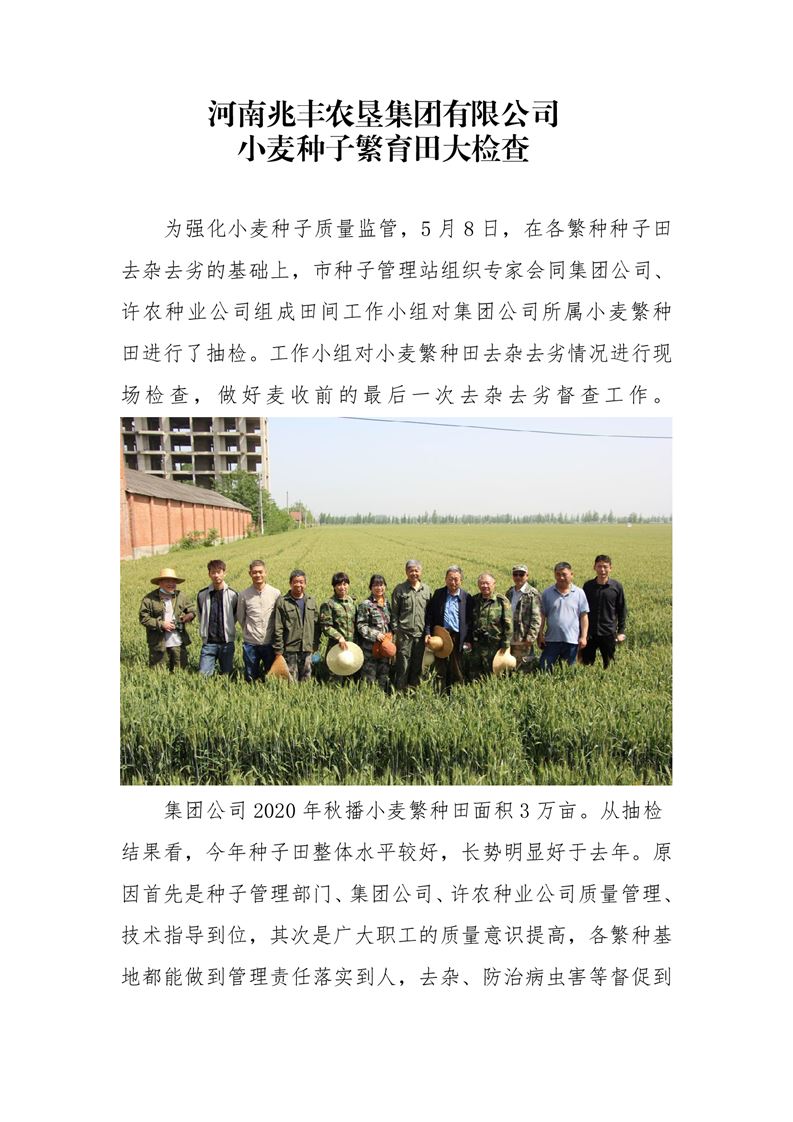 · 河南兆豐農墾集團有限公司 小麥種子繁育田大檢查
