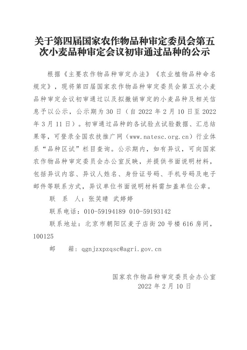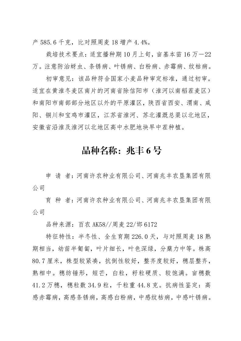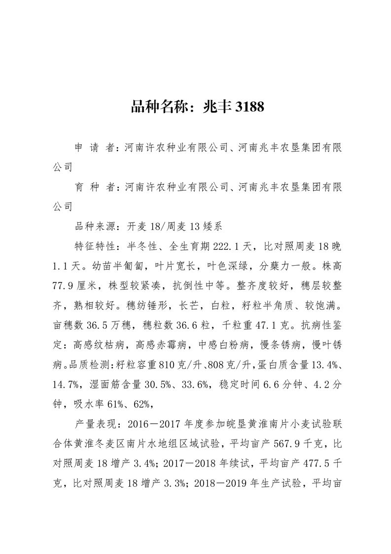 · 祝賀河南兆豐農(nóng)墾集團(tuán)有限公司 小麥品種兆豐3188、兆豐6號通過第四屆國家農(nóng)作物品種審定委員會第五次小麥品種審定會議初審