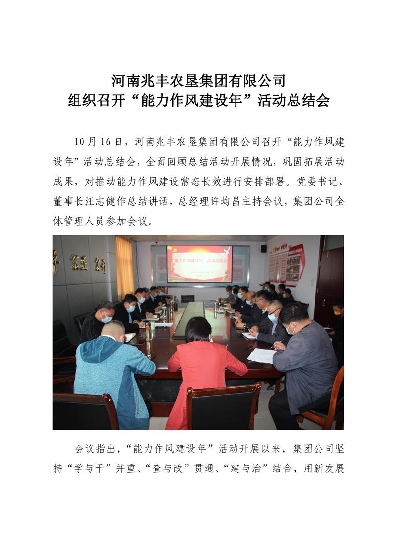 · 河南兆豐農墾集團有限公司 組織召開“能力作風建設年”活動總結會