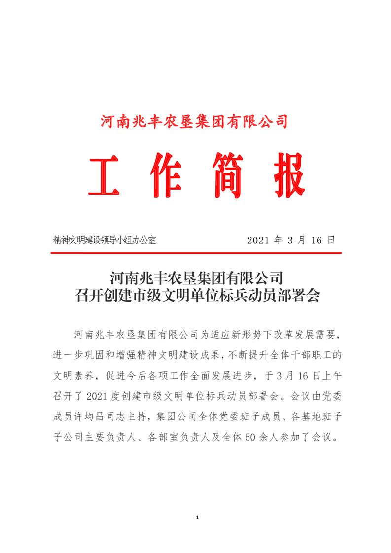 · 河南兆豐農(nóng)墾集團有限公司 召開創(chuàng)建市級文明單位標兵動員部署會