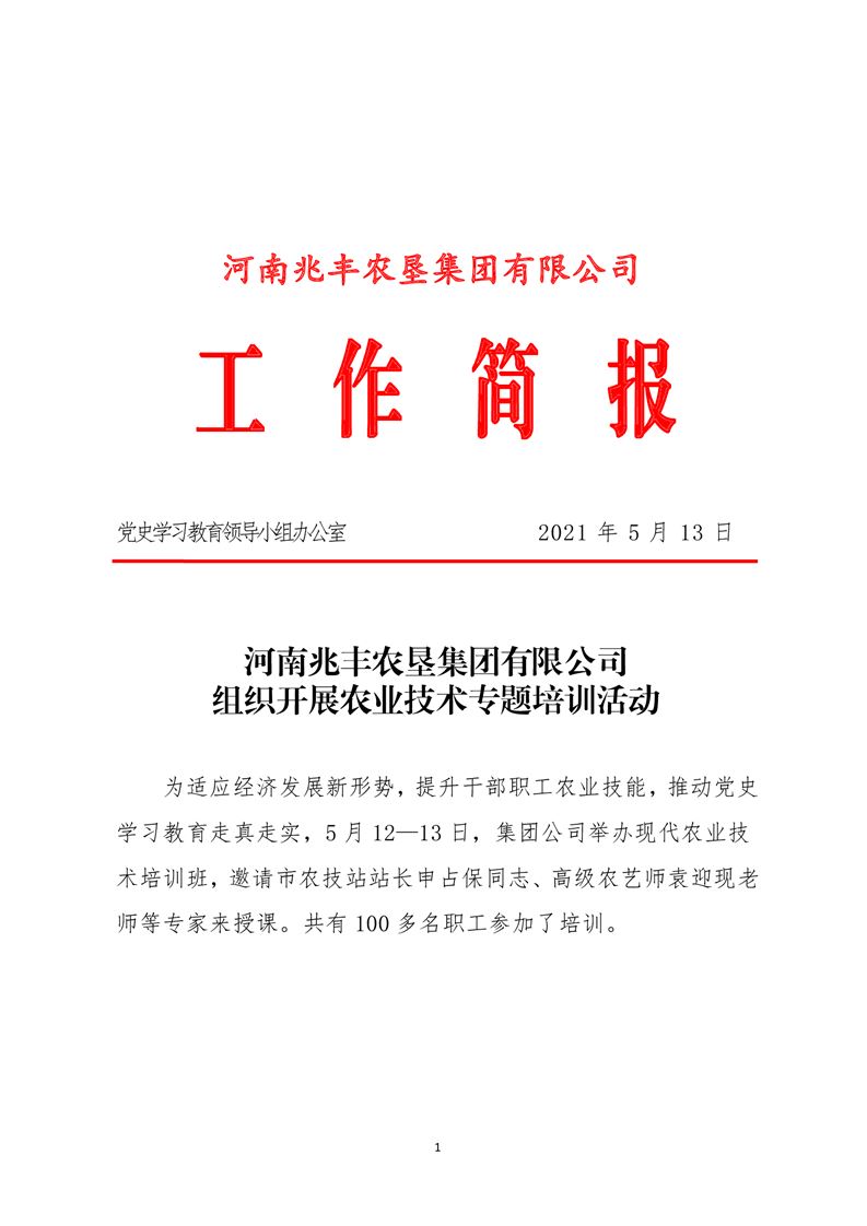 · 【我為職工辦實事】河南兆豐農墾集團有限公司 組織開展農業技術專題培訓活動