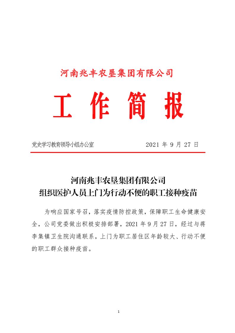 · 【我為職工辦實事】河南兆豐農墾集團有限公司 組織醫護人員上門為行動不便的職工接種疫苗