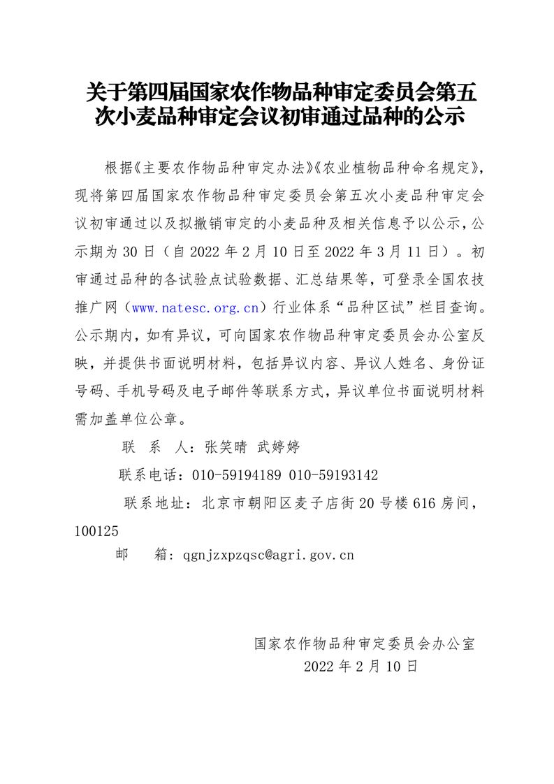 · 祝賀河南兆豐農墾集團有限公司 小麥品種兆豐6號、兆豐3188通過國家初審