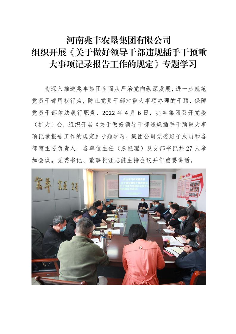 · 河南兆豐農(nóng)墾集團(tuán)有限公司 組織開展《關(guān)于做好領(lǐng)導(dǎo)干部違規(guī)插手干預(yù)重大事項(xiàng)記錄報(bào)告工作的規(guī)定》專題學(xué)習(xí)