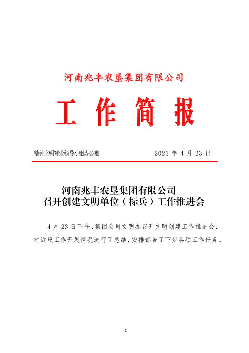 · 河南兆豐農(nóng)墾集團(tuán)有限公司 召開(kāi)創(chuàng)建文明單位(標(biāo)兵)工作推進(jìn)會(huì)