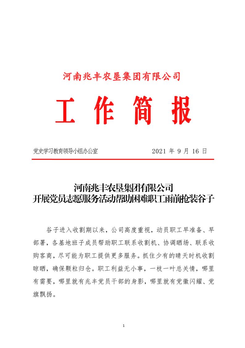 · 【我為職工辦實(shí)事】河南兆豐農(nóng)墾集團(tuán)有限公司 開展黨員志愿服務(wù)活動(dòng)幫助困難職工雨前搶裝谷子