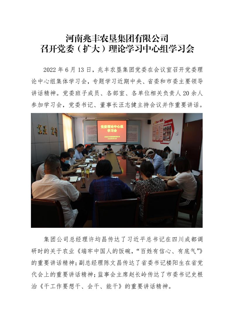 · 河南兆豐農(nóng)墾集團有限公司 召開黨委(擴大)理論學習中心組學習會