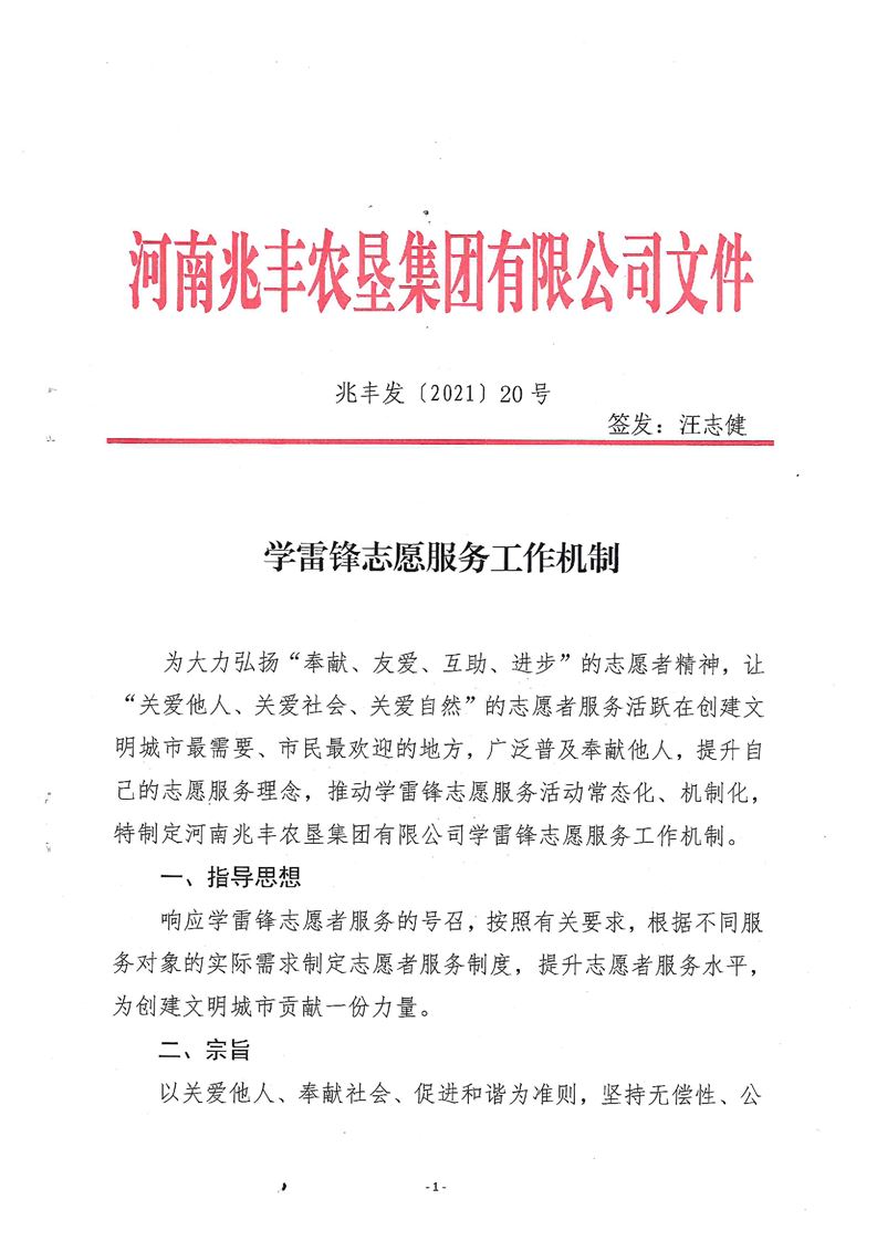 · 河南兆豐農墾集團有限公司 學雷鋒志愿服務工作機制