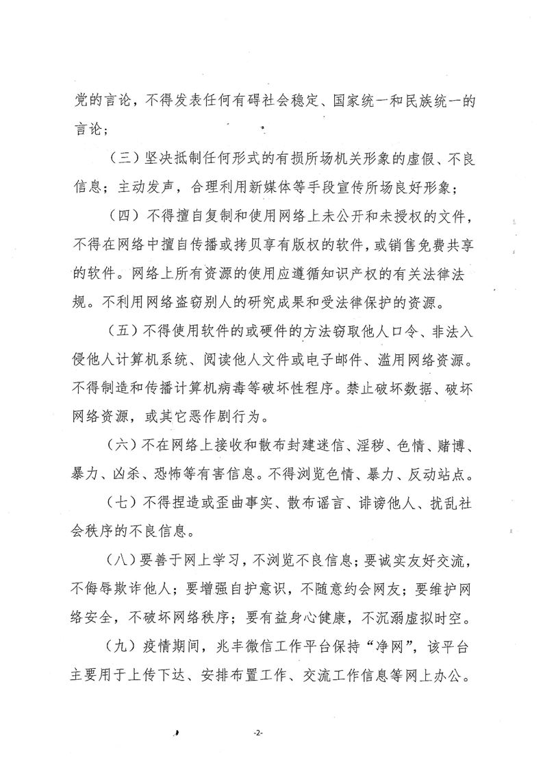 · 河南兆豐農墾集團有限公司 干部職工文明上網規范要求