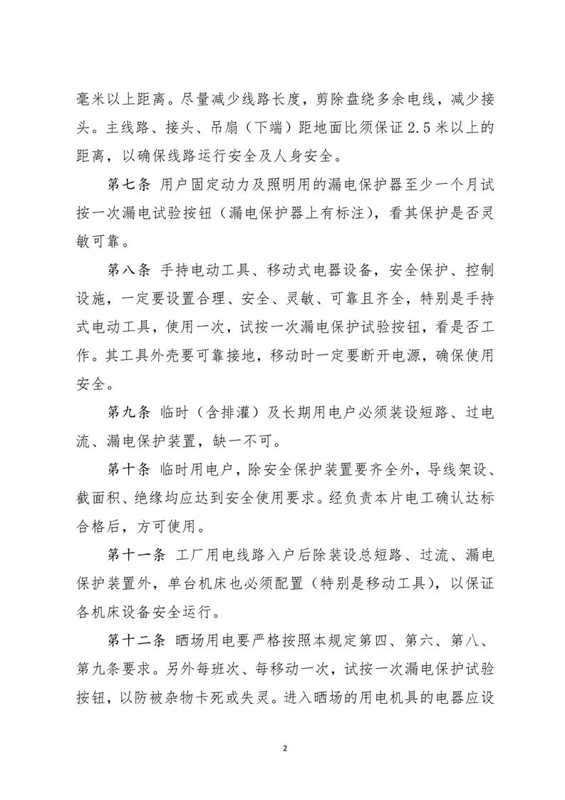 河南兆豐農墾集團有限公司 安全用電管理規定
