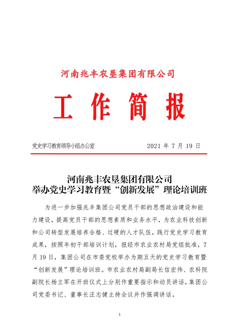 · 河南兆豐農墾集團有限公司 舉辦黨史學習教育暨“創新發展”理論培訓班