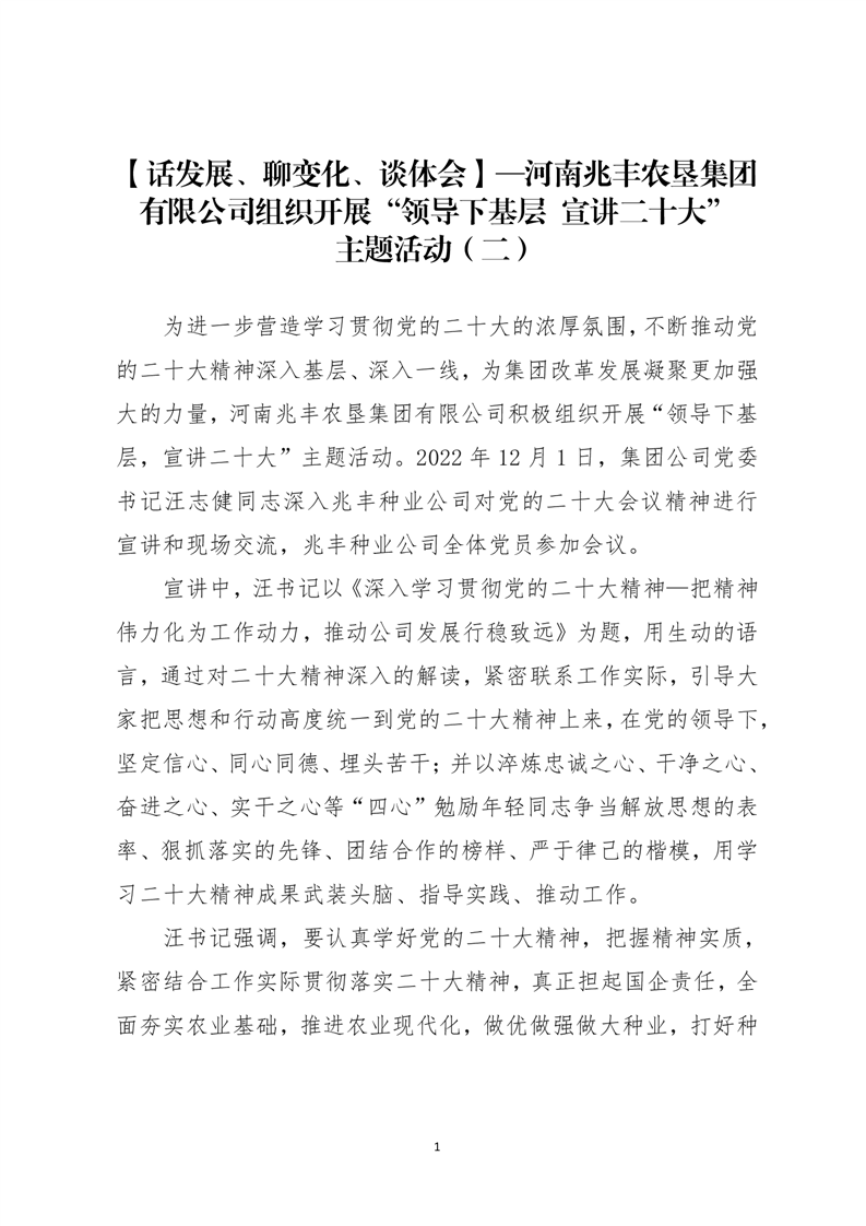 · 【話發展、聊變化、談體會】—河南兆豐農墾集團有限公司組織開展“領導下基層 宣講二十大” 主題活動(二)