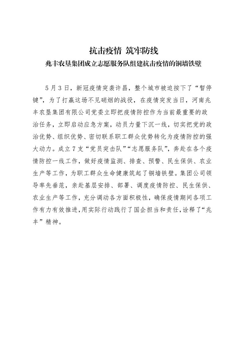 · 抗擊疫情 筑牢防線 兆豐農(nóng)墾集團成立志愿服務隊組建抗擊疫情的銅墻鐵壁