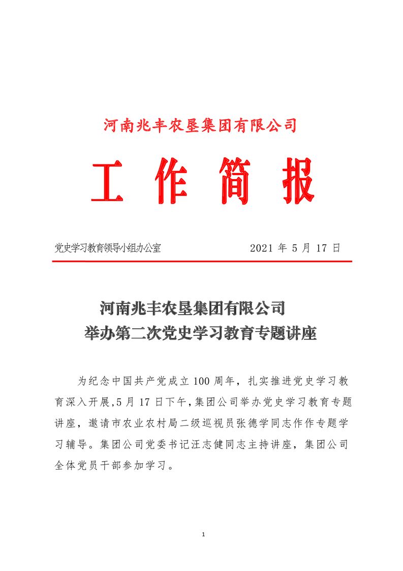 · 河南兆豐農墾集團有限公司 舉辦第二次黨史學習教育專題講座