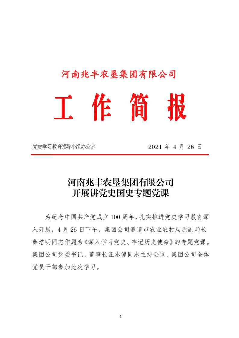 · 河南兆豐農墾集團有限公司 舉辦第一次黨史學習教育專題黨課